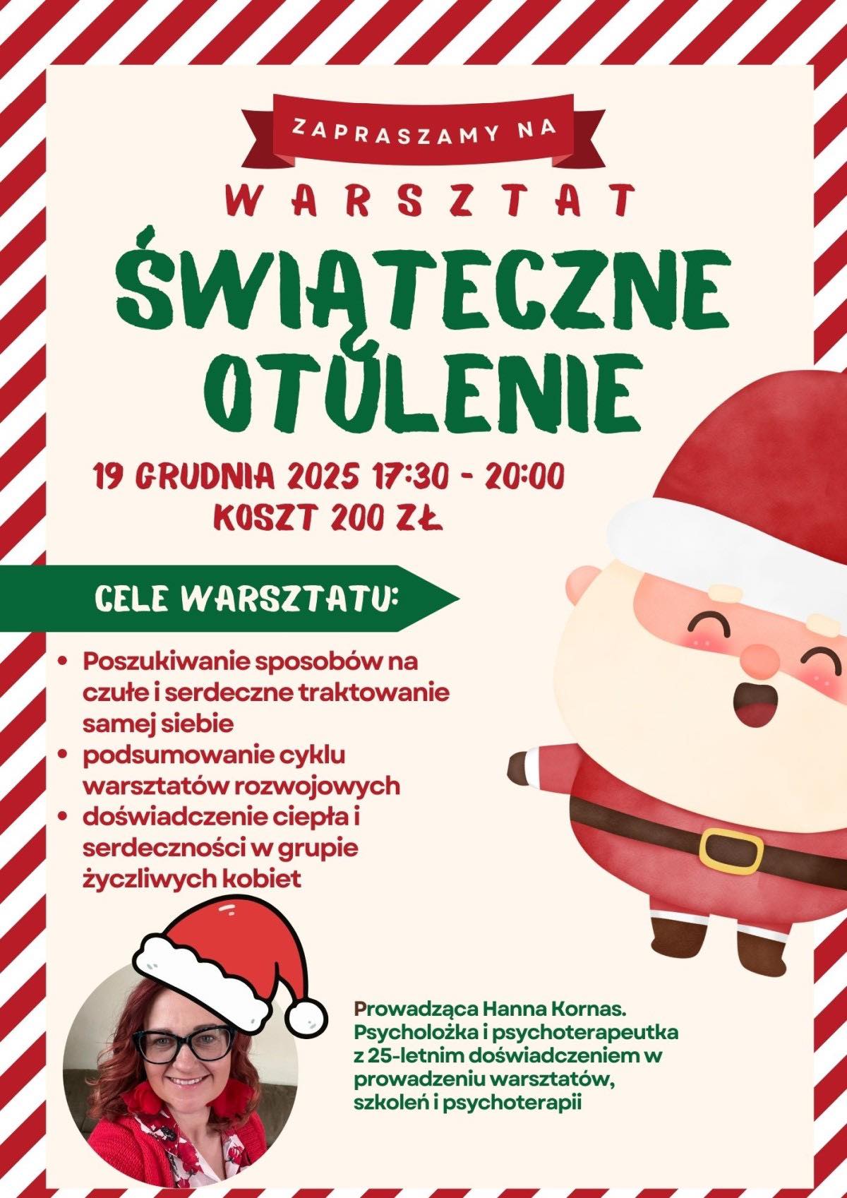 Na dzisiejszym spotkaniu warsztatowym „ Świąteczne otulenie” podsumowywałyśmy dwa lata trwania cyklu „ Podróż do wnętrza siebie”. Było dużo śmiechu, dużo łez i dużo wdzięczności. Właśnie wdzięczność jest też tym uczuciem, które mnie obecnie wypełnia. Bardzo Wam dziękuję drogie uczestniczki za dziś i za ostatnie dwa wspólne lata ❤️Hanna Kornas